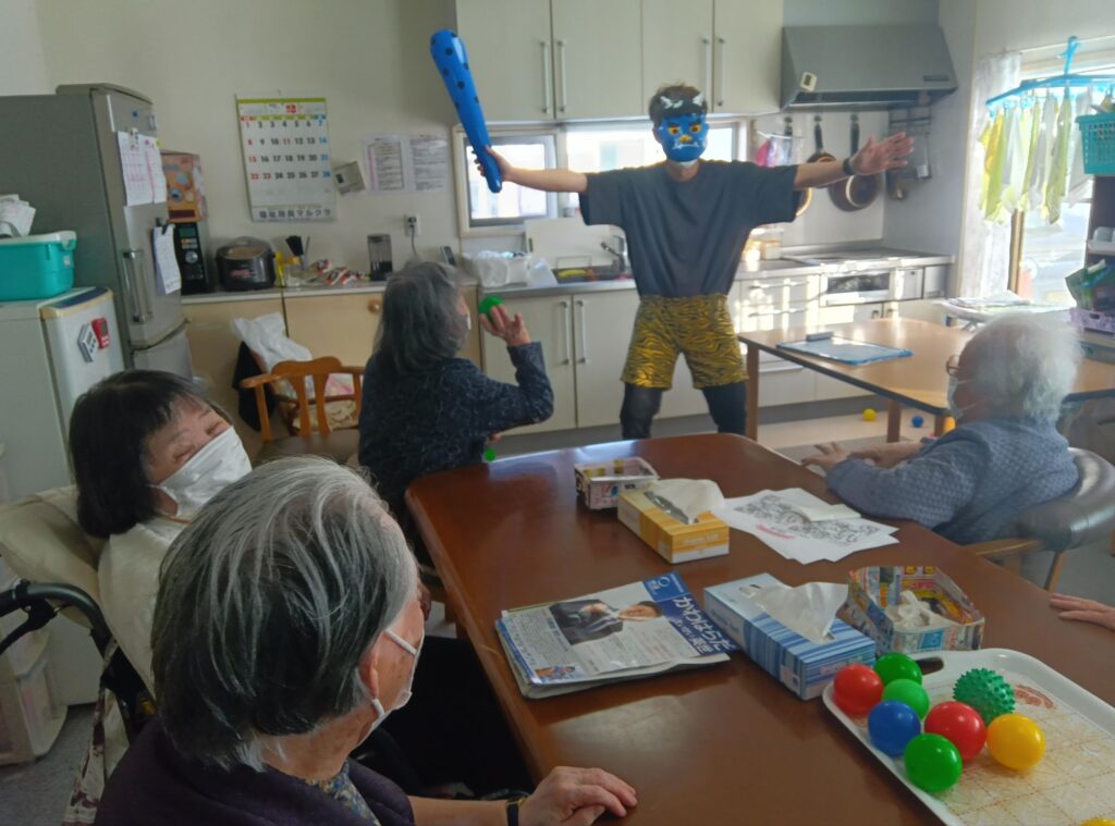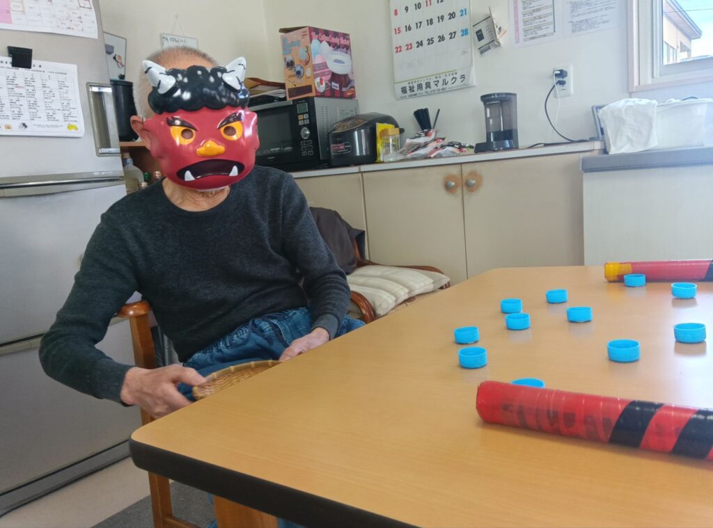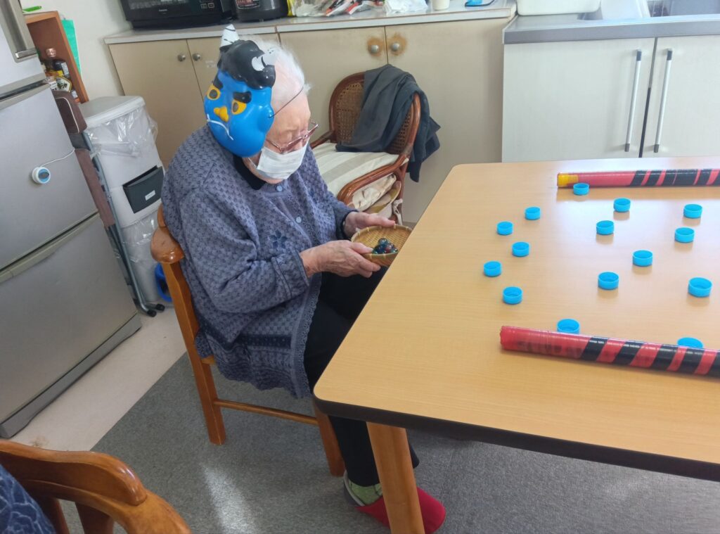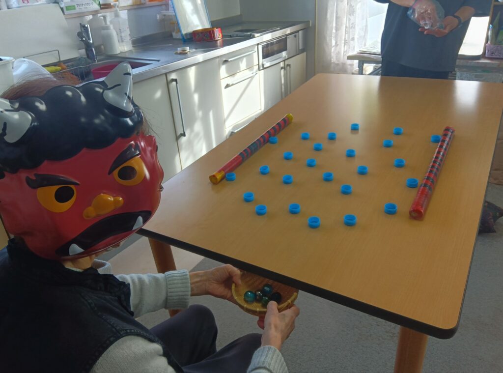 今回はスタッフがふんした鬼に向かって『鬼は外ー!』とカラーボールを投げて、一年の邪気を払いました👍